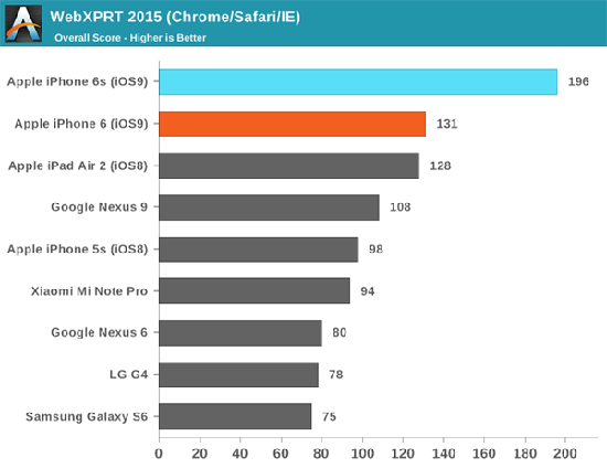 Ресурс AnandTech одним из первых протестировал производительность смартфонов iPhone 6s и iPhone 6s Plus, оснащенных 64-битной SoC Apple A9. Издание провело серию тестов, которые подтвердили преимущество новых iPhone над Android-смартфонами по части вычислительной и графической мощности.