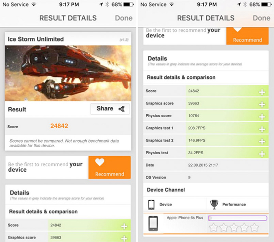 В тесте на графическое быстродействие iPhone 6s опередил главного конкурента Galaxy S6. Результат смартфона Apple в бенчмарке 3DMark составил 24842 балла против 21026 у южнокорейского аппарата. Другими словами, флагман Apple не только смог на несколько корпусов обставить предыдущие iOS-устройства, но и обошел самый производительный смартфон Samsung.