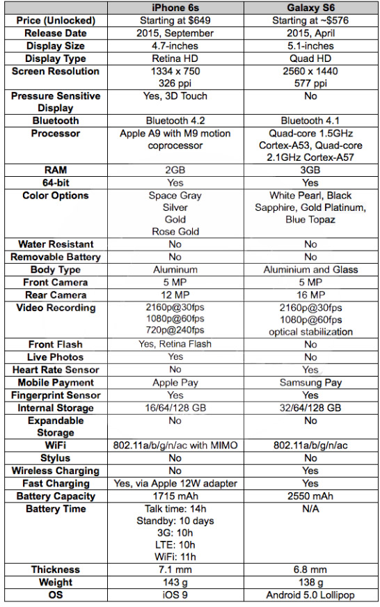 iPhone 6s против Samsung Galaxy S6: битва флагманов