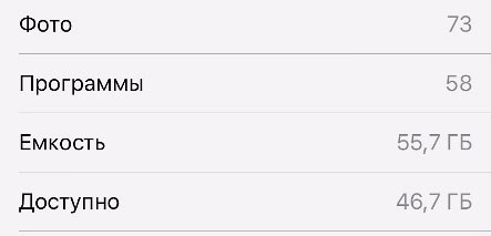 Состояние памяти на моем iPhone 6 64 ГБ выглядит примерно так: