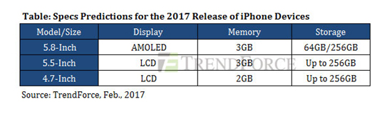 iPhone 8 получит 5,8-дюймовый дисплей 2K, 3 ГБ ОЗУ, 64 и 256 ГБ флеш-памяти