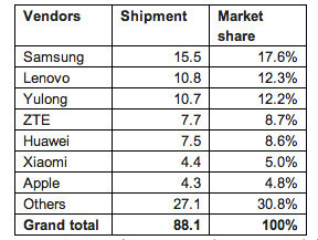 Согласно подсчетам Canalys, китайские производители оказывают все большее давление на Samsung и Apple: на долю Lenovo, Yulong, Huawei, ZTE и Xiaomi приходится 20% мирового рынка смартфонов против 15% в прошлом году.