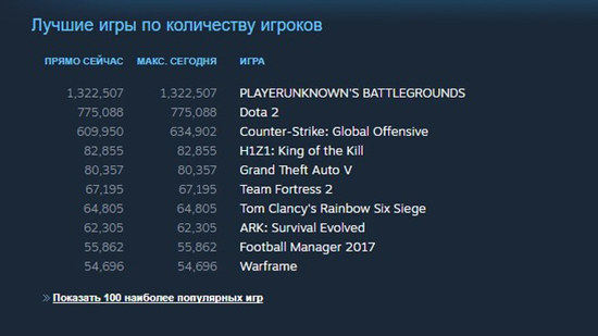 Шутер Playerunknown's Battlegrounds окончательно обогнал игру DOTA 2 от компании Valve по количеству одновременных игроков в игре. По данным сразу нескольких статистических сайтов, вроде Githyp и SteamSpy, 16 сентября в игре одновременно были онлайн 1348025 игроков. Предыдущий подобный рекорд принадлежал DOTA 2 в 2015 году, когда пик игроков в онлайне составлял 1291328 игроков. Интересно, что недавно компания Bungie сообщала о более чем 1,3 миллионов активных игроков в своей игре Destiny 2 на консолях PS4 и Xbox One.