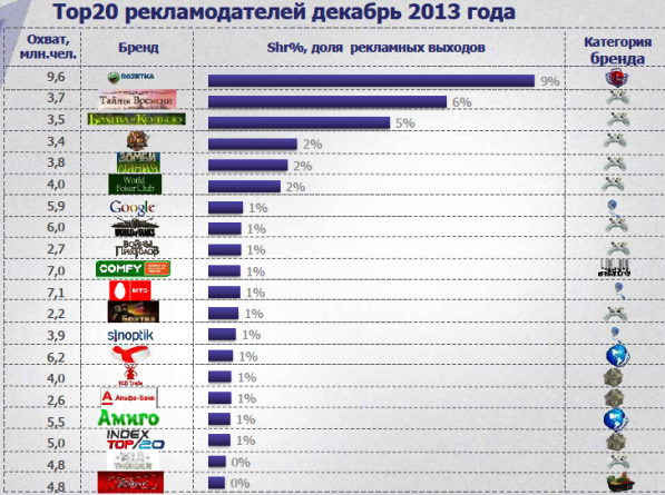 - Среднедневная доля – среднее значение дневной доли аудитории за месяц