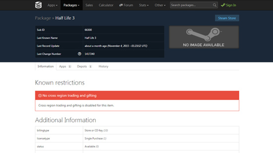 Самой примечательной игрой, которая попала в базу данных сети оказалось долгожданное продолжение серии Half-Life. Судя по описанию, последнее обновление информации о Half-Life 3 датировано 4 ноября 2015 года. Однако игру добавили в базу еще 8 месяцев назад.