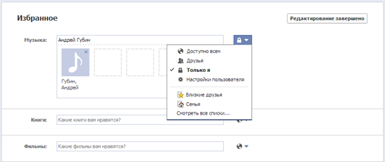 3. Жмем на «Редактировать» или прямо на плиточку с интересом и выбираем для категории настройки приватности – будет ли информация об этом интересе доступна только вам или избранным.