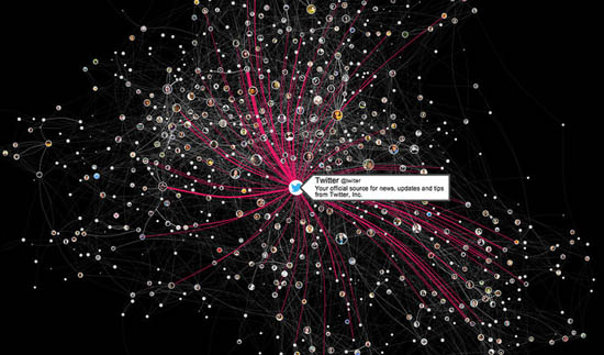 Проанализировав твиты, которые работники Twitter адресуют друг другу, разработчик Santiago Ortiz создал карту взаимосвязей между ними. Работа выполнена на высоком уровне, как графическом, так и техническом и поражает своей детализацией.