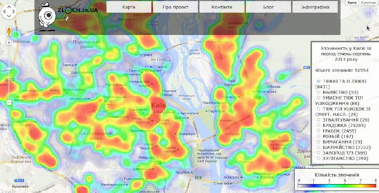 Интерактивная карта преступности Киева появилась в открытом доступе