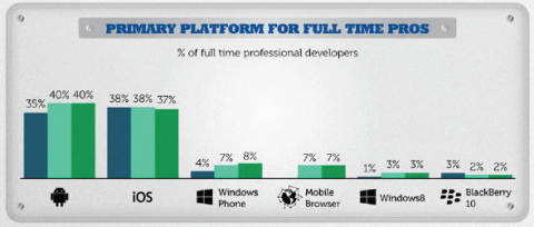 По данным последнего исследования, проведённого аналитической организацией VisionMobile и затронувшего 8 000 мобильных разработчиков, интерес к операционной системе Windows Phone продолжает расти. Теперь 30% разработчиков нацелены на мобильную платформу от Microsoft, тогда как полгода назад эта цифра равнялась 28%, а год назад - 26%. В третьем же квартале 2013 всего 21% разработчиков работали с этой операционной системой. Windows Phone за это время также завоевала большее внимание со стороны профессиональных разработчиков: их количество возросло до 8%, то есть увеличилось на 4% по сравнению с прошлым годом.