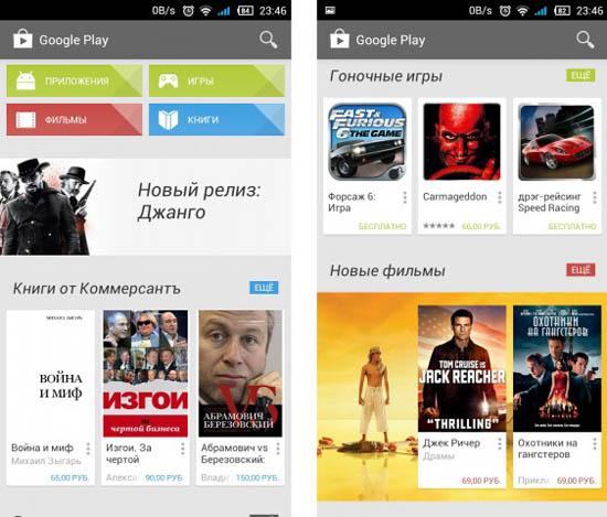 Недавно карточный интерфейс появился в магазине приложений Google Play. Мы видим иконку или обложку, имя автора, рейтинг и цену. Этой информации обычно достаточно для того, чтобы понять, нужен ли нам тот или иной контент. Такой вид помогает быстро просматривать большой объем данных.