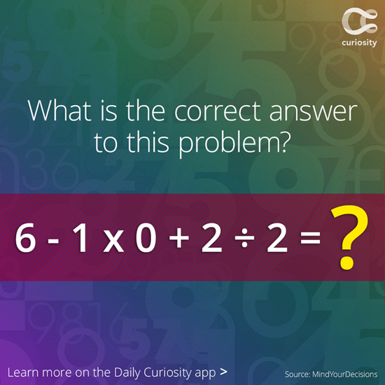 Иногда даже простейшие на первый взгляд арифметические задачи могут вызвать жаркие дебаты о путях решения. Сообщество Curiosity в Facebook опубликовало именно такую «проблемную» задачу. Оказалось, что Google дает один вариант ответа, а старый калькулятор — совсем другой. Кто прав на самом деле, решили выяснить в Curiosity.