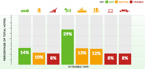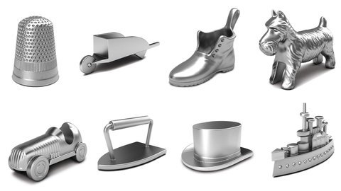 Стандартный набор фигурок «Монополии» включает в себя машину, пароход, тележку, собаку, цилиндр, ботинок, наперсток, наездника и пушку. Ну и экс-утюг, конечно. Если взглянуть на график, становится ясно, что в опасности были также ботинок и тележка.