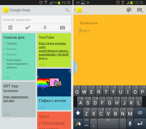 Keep существует в двух вариантах: в виде веб-сервиса и в виде мобильного приложения, которое, правда, совместимо только с устройствами на базе Android 4.0 и выше. Пользователи Android 4.2 шикуют - им позволяется еще и выносить виджет Keep на экран блокировки аппарата.