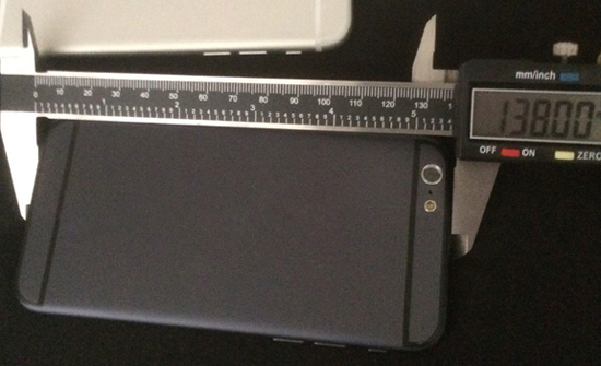 По традиции новые модели iPhone и iPad становятся изящнее, несмотря на более внушительные характеристики и усиленный аккумулятор. В случае с грядущим флагманом прогресс будет достигнут за счет увеличения размеров устройства. Согласно показаниям цифрового штангенциркуля, толщина iPhone 6 составляет 7,0 мм, тогда как тот же параметр у iPhone 5s – 7,6 мм. Таким образом смартфон «похудеет» на 0,6 мм.