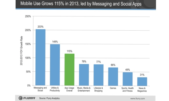 Новогодние праздники уже позади, но аналитические компании все еще продолжают подводить итоги прошедшего года. Согласно новым данным исследовательской фирмы Flurry, опубликованным в понедельник, использование мобильных приложений для смартфонов за 2013 год выросло на 115%. В рамках исследования было проанализировано 1,126 триллиона мобильных сессий в течение всего года.