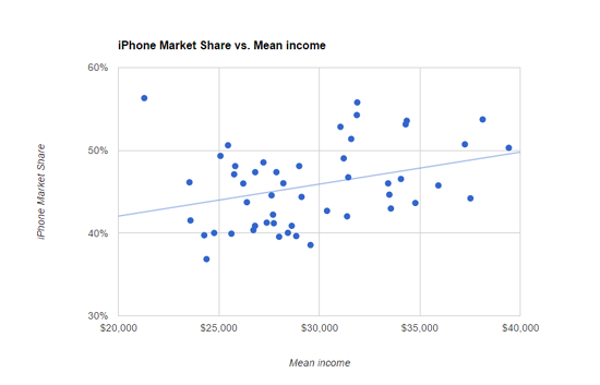Рыночная доля iPhone в зависимости от уровня дохода