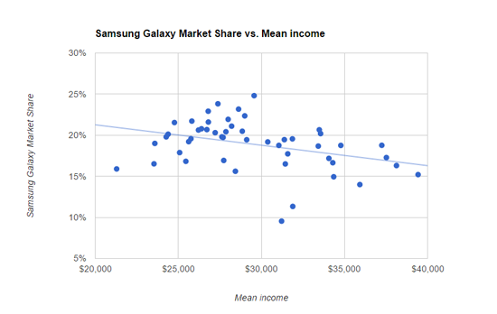 Рыночная доля смартфонов Samsung в зависимости от уровня дохода