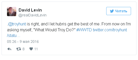 Некоторые коллеги Левина по цеху склонны согласиться с оценкой правоохранительных органов. Известный исследователь в области информационной безопасности Трой Хант (Troy Hunt), владелец агрегатора утечек данных HaveIBeenPwned.com, высказался следующим образом: