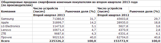 По данным аналитического агентства Gartner, во втором квартале этого года во всем мире было продано 435 миллионов 158 тысяч сотовых телефонов, из них на долю смартфонов пришлось 225 миллионов 326 тысяч продаж, на долю «звонилок» — 209 миллионов 802 тысячи. Рынок смартфонов в сравнении с аналогичным периодом прошлого года вырос на 46,5%, а рынок обычных сотовых телефонов «просел» на 21%.