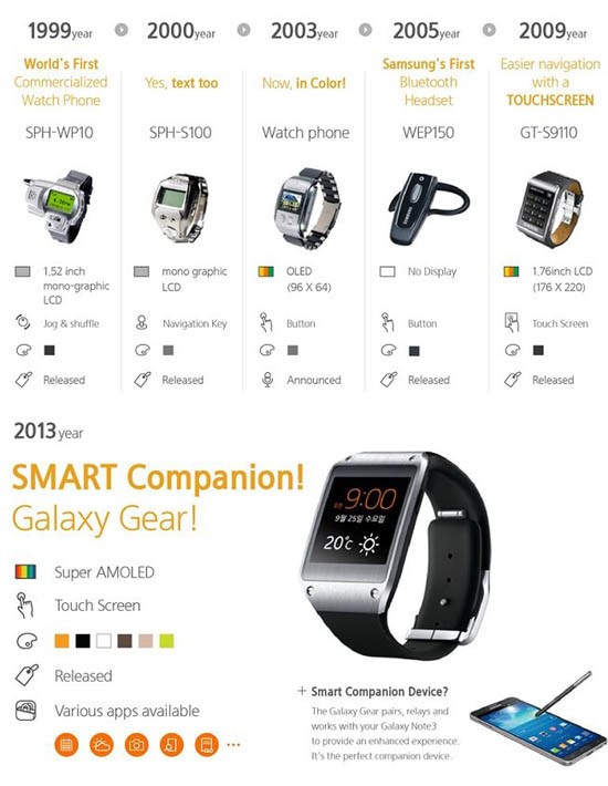 Как оказалось, Galaxy Gear – далеко не первый носимый гаджет южнокорейской компании. В 1999 году в продажу поступили часы-телефон SPH-WP10. Вряд ли девайс можно сравнивать по "интеллекту" с Galaxy Gear или другими современными представителями этого сегмента, но, как видим, концепт часов с расширенным функционалом совсем не нов. Учитывая весь многолетний опыт Samsung в этой сфере, становится даже немного обидно, что в начале октября нам представили всего-лишь Galaxy Gear.