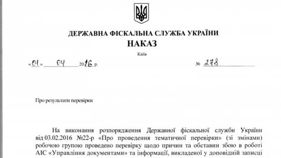 Аккурат в день дурака, 1 апреля, глава Государственной фискальной службы Роман Насиров подписал приказ №278 с малопримечательным названием «О результатах проверки» (см. ниже копию документа). Однако, несмотря на скромность названия, содержание документа, который удалось найти Hubs, как минимум приводит в замешательство.