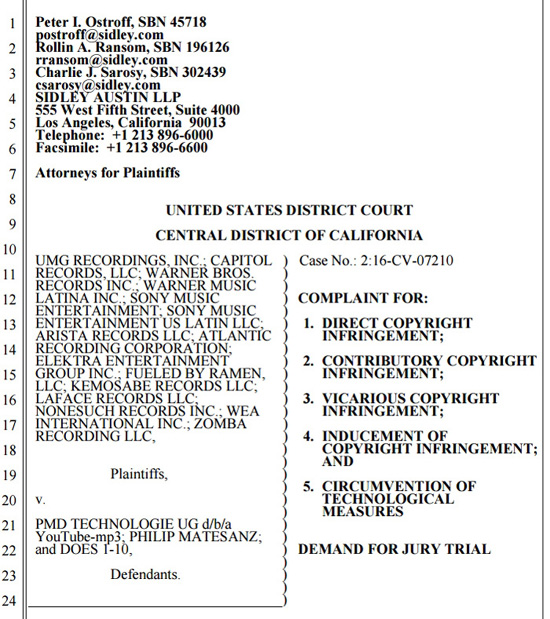 Первая страница иска к YouTube-mp3