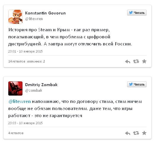 Жителям полуострова Крым могут запретить совершать покупки в сервисе цифровой дистрибуции Steam. Об этом сообщает сообщество Steam «ВКонтакте». Источники TJ, близкие к Valve, также подтвердили эту информацию, однако официальных заявлений от компании пока не поступало.