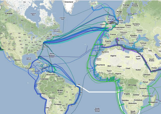 Карта подводных интернет-кабелей. Часть из них контролирует Google