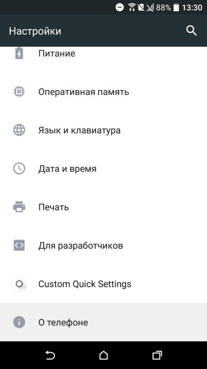 -Затем следует пролистать меню вниз и найти раздел «О телефоне»
