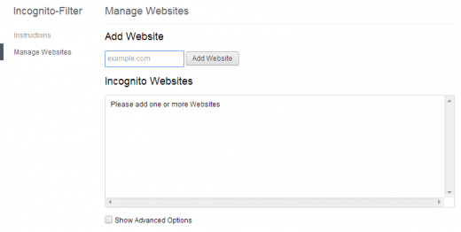 Здесь в разделе «Manage Websites» вводятся адреса сайтов, которые должны открываться в режиме инкогнито.