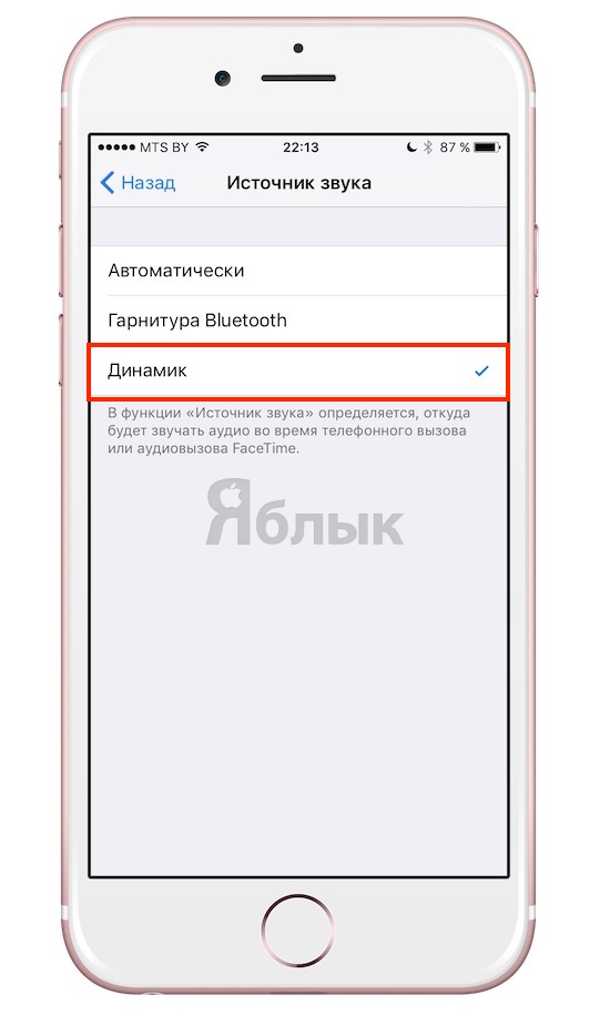 3. Выберите вариант Динамик (или Гарнитуру, если вы предпочитаете такой способ общения).