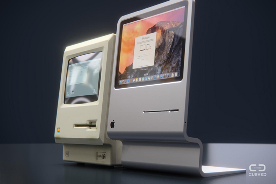 В преддверии дня рождения первого компьютера Apple немецкие дизайнеры из Curved подготовили концепт нового поколения Macintosh. В устройстве легко угадываются как черты 30-летнего компьютера, так и современных моделей MacBook Air и iPad.