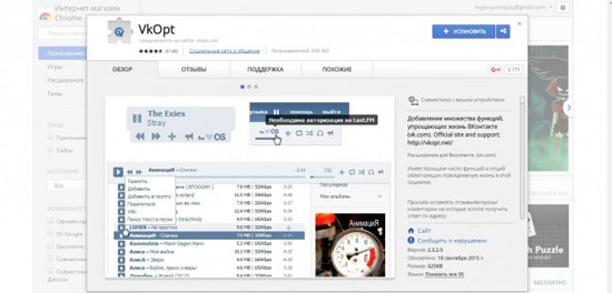 Один из популярных плагинов — VkOpt. Он размещается в магазине расширений Chrome и имеет собственный сайт, где можно скачать версию под любой нужный браузер, среди которых Safari и Maxthon.