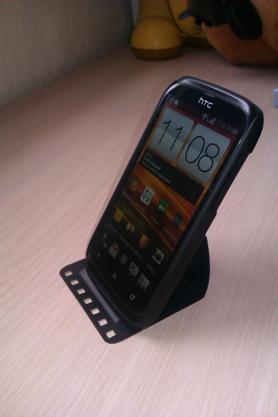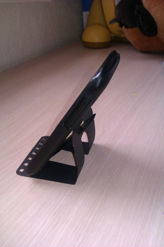 Купил смартфон, и понял что на рабочем столе ему надо определить место. Поскольку в горизонтальном положении его держать неудобно, понял, что нужен кредл. Поискав по интернет-магазинам, понял, что эта вещица не из дешевых. Но все же заказал изделие из пластмассы китайского происхождения. Но вот незадача — в чехле его использовать неудобно, да и положение «лежа» не совсем то что нужно. Поэтому было решено вернуть пластмассовый крэдл и свои 200 грн., а вместо этого сделать своими руками из жесткого пластика вырезанного из обычной папки-скоросшивателя кредл, который можно использовать и в вертикальном положении смартфона, а самое главное переносить в бумажнике.