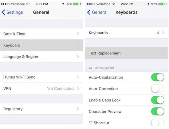 Возможность автоматической замены сокращенных фраз на полные появилась давно, однако не все знают, как ею правильно пользоваться и где вообще она находится. Открой Настройки → Основные → Клавиатура и вторым пунктом ты найдешь нужное меню.