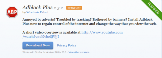 Если вы хотите заблокировать рекламу только в своем браузере, то вам придется присмотреться к мобильной версии Firefox, потому что Adblock Plus имеет расширение только для этого браузера. Скачать мобильный Firefox можно здесь, а затем открыть в нем страницу расширения и установить его обычным способом. Перезапустите браузер для начала работы расширения.