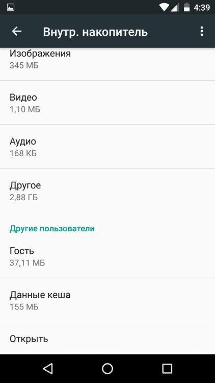 Отдельно отметим интересную организацию памяти. В разделе «Хранилище и USB-накопители» отображается подробный анализ занятого места текущего пользователя, однако в самом конце также отображается общий расход мегабайтов различных пользователей. Выглядит это примерно так: