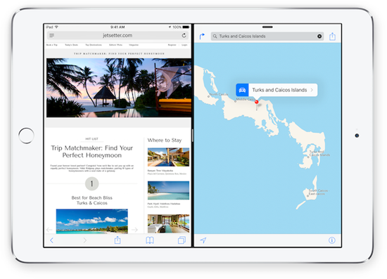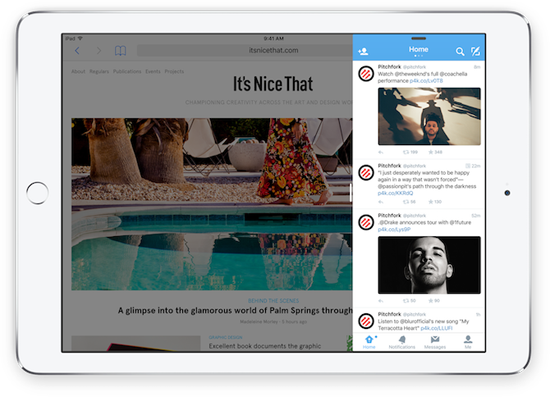 Но теперь все изменилось. В iOS 9 появились возможности, которые придутся по душе power user'ам. Впервые на планшете можно запускать два приложения одновременно, следить за лентой Twitter, просматривая видео на YouTube или пользоваться браузером, отвечая на сообщение.