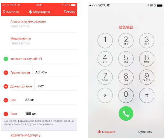 В Apple понимают, что такие случаи имеют место, и поэтому сделали возможным доступ к медицинской карте даже без разблокировки телефона. Достаточно нажать SOS и выбрать медицинскую карту, чтобы ее просмотреть. Полезно, если пациент находится без сознания или не в состоянии вспомнить пароль от своего смартфона.