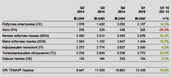 «Лучше всего продавалась крупная бытовая техника - вытяжки, холодильники и стиральные машины. Это связано с тем, что люди завершали ремонты и доукомплектовывали квартиры, - комментирует данные исследования Дарья Перекосова. - Также покупка крупной бытовой техники рассматривалась потребителями как инвестиция. В телекоммуникационном оборудовании был рост за счет смартфонов. В группе «малая бытовая техника» лучше всего себя «чувствовали» мультиварки, кофеварки и пылесосы. Группу «бытовая электроника» продрайвили телевизоры. Впервые вырос в гривне сегмент ИТ (включает ноутбуки, планшеты), но только за счет роста цен».