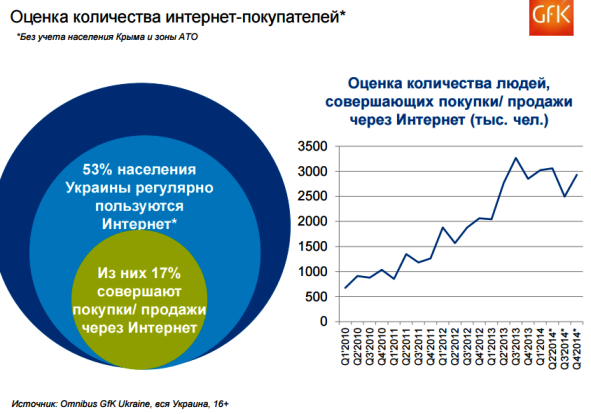По данным GfK Ukraine, уже 17% регулярных онлайн-пользователей покупают товары (услуги) через интернет.