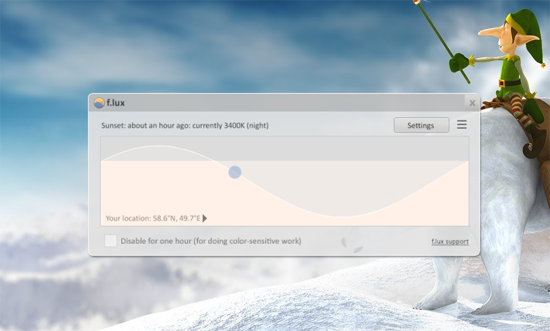 Проверить эффективность f.lux очень просто — какое-то время поработайте на компьютере, монитор которого выводит теплые оттенки, а затем зайдите в настройки программы и отключите модификацию цветов — наверняка вы почувствуете дискомфорт и захотите как можно скорее снова включить f.lux.