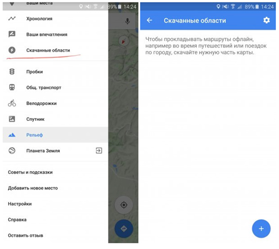 нажмите на кнопку в форме трех линий, которая находится в левом верхнем углу. В этом меню перейдите в раздел “Скачанные области”.