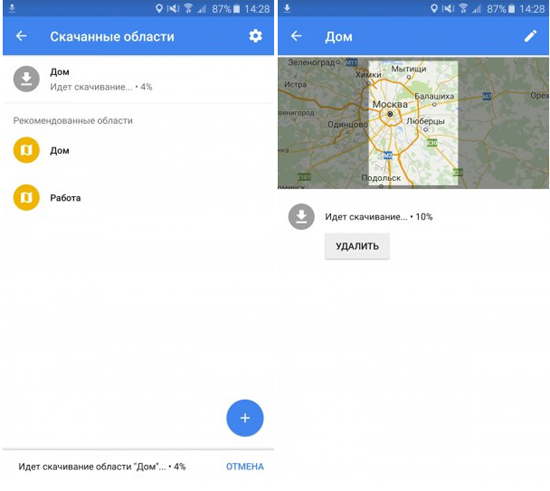 4.Загруженные карты, естественно, доступны в разделе “Скачанные области”. Теперь нет нужды в подключении к интернету, если вы находитесь в пределах этих областей.