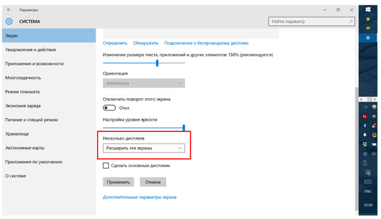 6. Вы можете либо продублировать картинку с компьютера на мобильное устройство, либо использовать его экран в качестве дополнительного. Настроить способ вывода изображения можно через параметры графики или через специальное меню, которое откроется, если нажать Win+P. Через системные настройки можно настроить масштабирование элементов системы для каждого экрана.