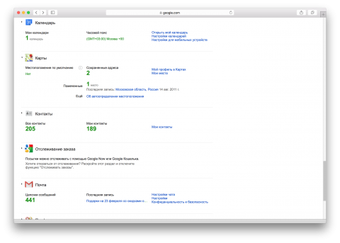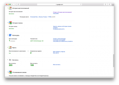 Раздел «Календарь» будет интересен тем, кто пользуется этим сервисом для записей о встречах и событиях. В разделе «Карты» содержатся данные о сохранённых адресах. И здесь же можно создать профиль в службе «Google Карты», чтобы показывать другим свои любимые места, добавлять отзывы о компаниях, создавать карты и помечать на них свои любимые места, получать удобный доступ ко всем картам и отзывам в своём профиле или делиться своими мыслями и отзывами с друзьями.