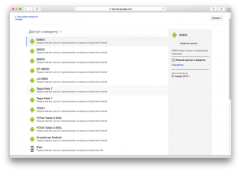 Раздел Android — здесь отображаются устройства, на которых вы входили в свой аккаунт.