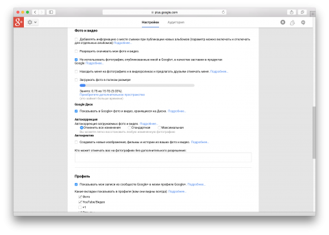Например, вы можете поставить галочку, чтобы в ваш аккаунт загружались фотографии в полном размере, отключить автокоррекцию и автокреатив.