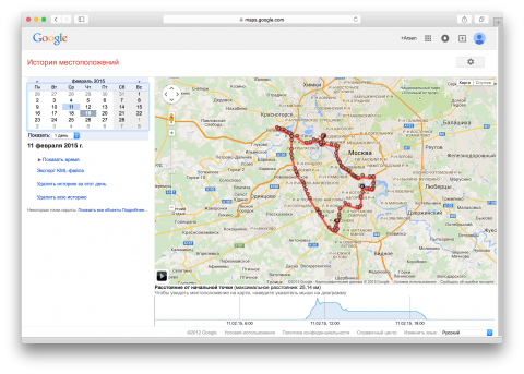 В этой вкладке хранится то, чего опасаются многие — информация о том, где и когда вы были в последний месяц.