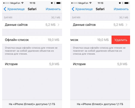 Некоторые приложения позволяют очистить их кеш из настроек устройства, но не все. Зайдите в раздел настроек Основные, затем в Хранилище и iCloud, и во вкладке «Хранилище» нажмите Управлять. Хорошим примером приложения, которое позволяет удалять временные данные из настроек, является Safari. Удалите те данные, которые, по-вашему, занимают слишком много места.